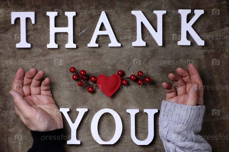 Спасибо слово из белых деревянных букв на столе и руки