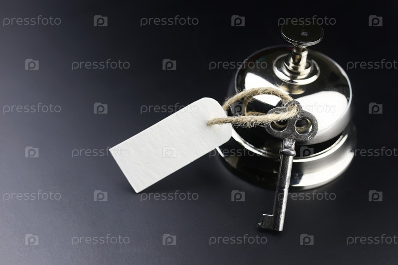 Звонок и ключ на стойке регистрации в отеле