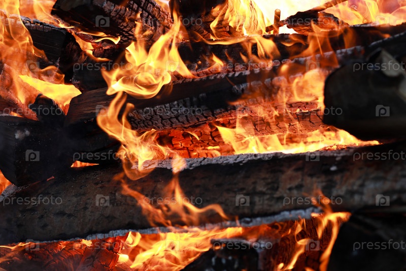 Бревна горят ярким пламенем в огне