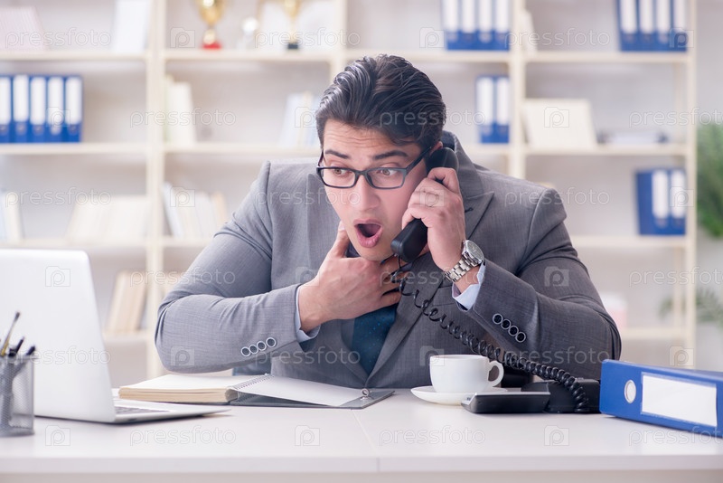 Бизнесмен во время пожарной сигнализации в офисе