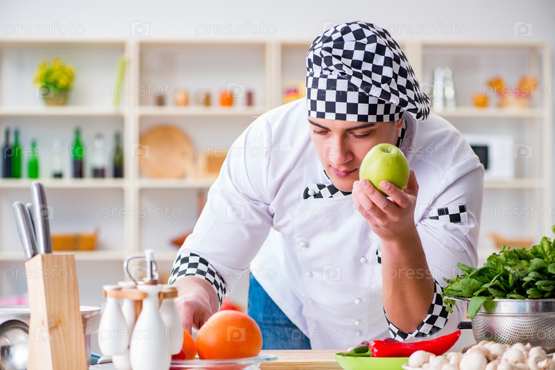 Повар работает на кухне
