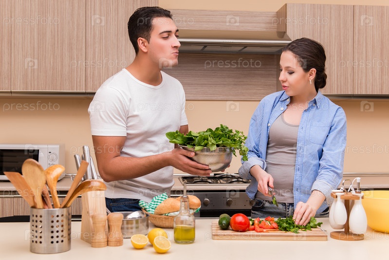 Молодая семья на кухне