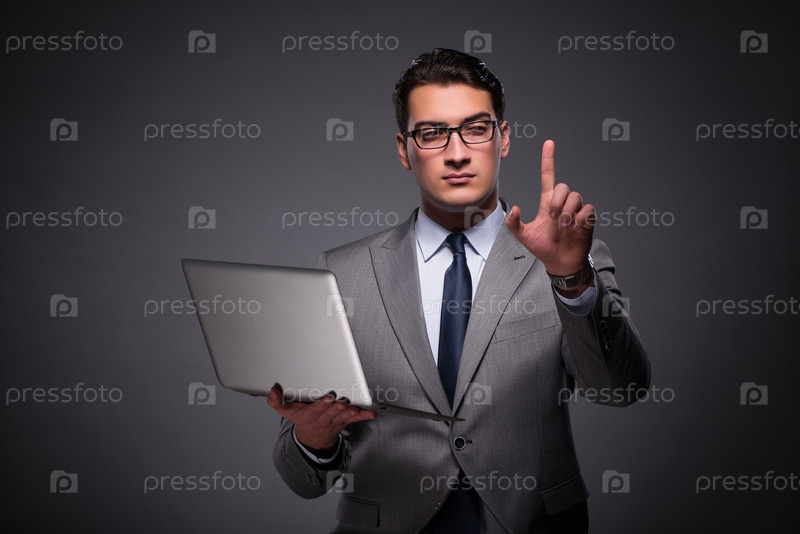 Красивый бизнесмен, работающий на портативном компьютере