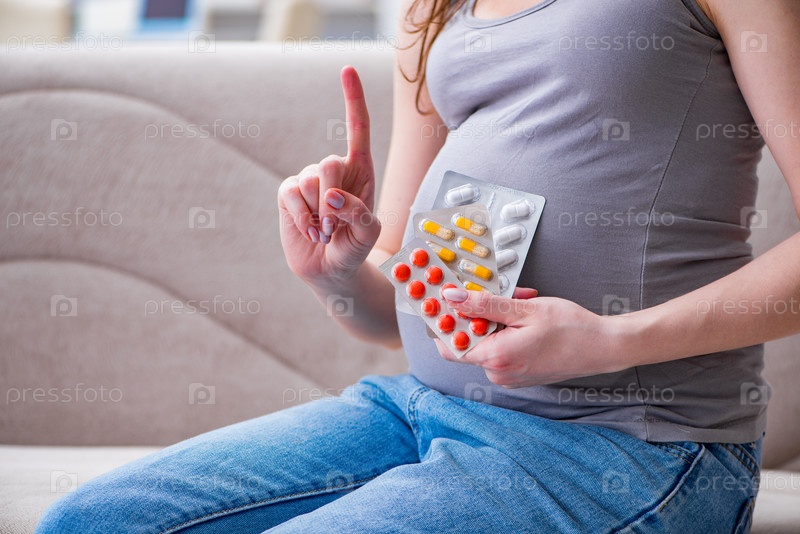 Беременная женщина с таблетками