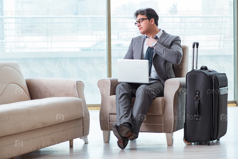 Молодой бизнесмен в бизнес-зале аэропорта в ожидании рейса