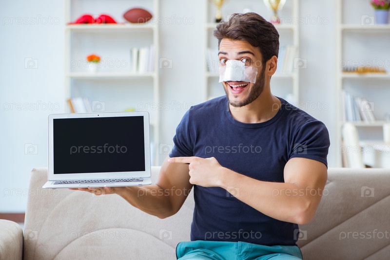 Молодой человек восстанавливается после пластической хирургии носа
