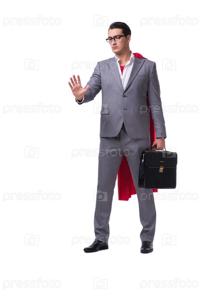 Супергерой бизнесмен на белом фоне