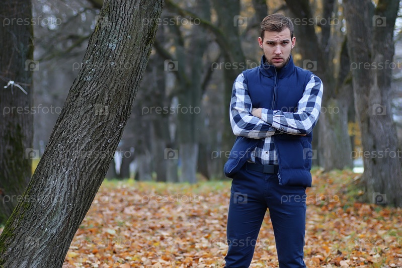 Красивый бородатый мужчина осенью