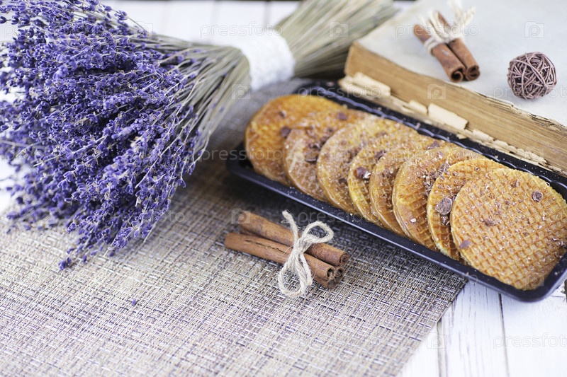 Венские вафли с карамелью на деревянном фоне