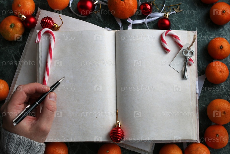 Мандарины и открытый блокнот