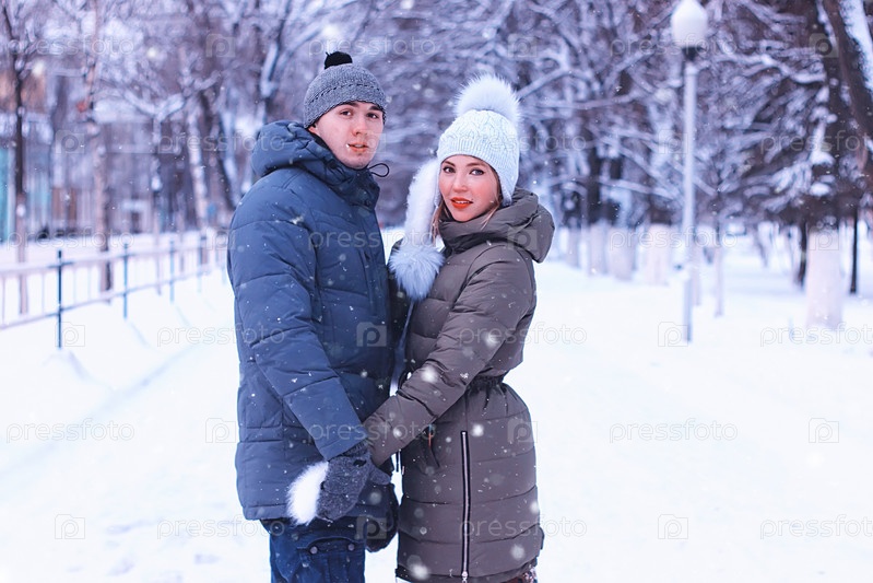 Молодая пара в зимнем парке