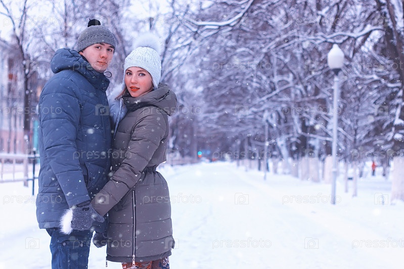 Молодая пара в зимнем парке