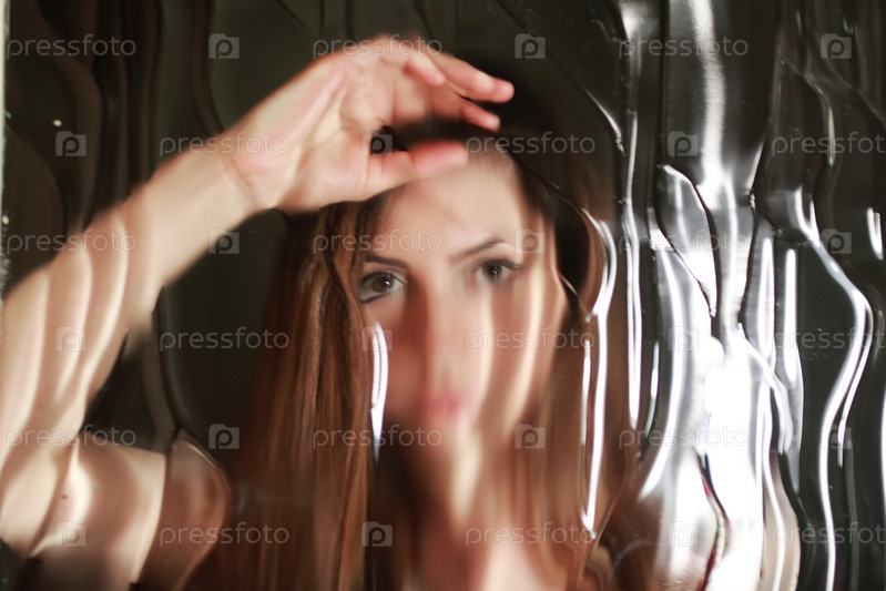 Лицо девушки за стеклом