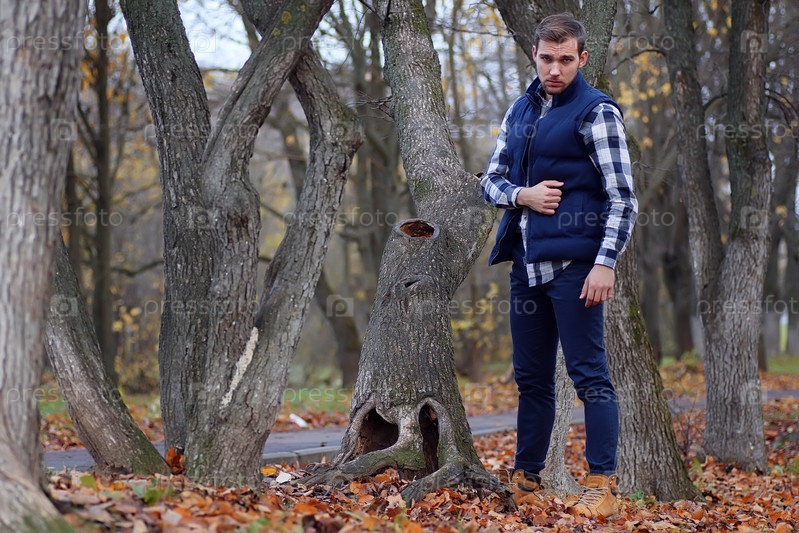 Красивый бородатый мужчина осенью