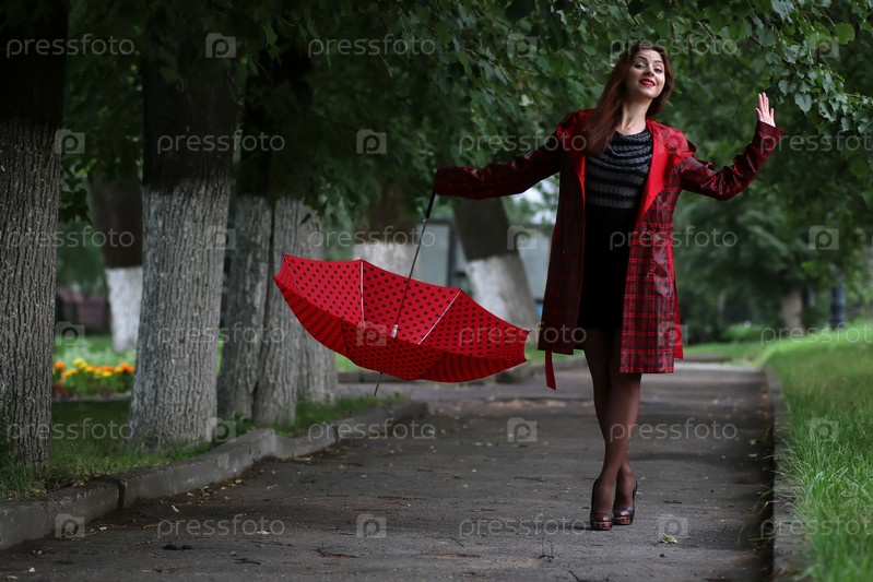 Женщина в плаще с зонтиком