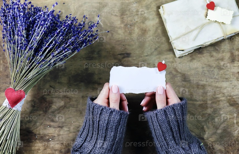 Девушка с букетом цветов лаванды и письмами