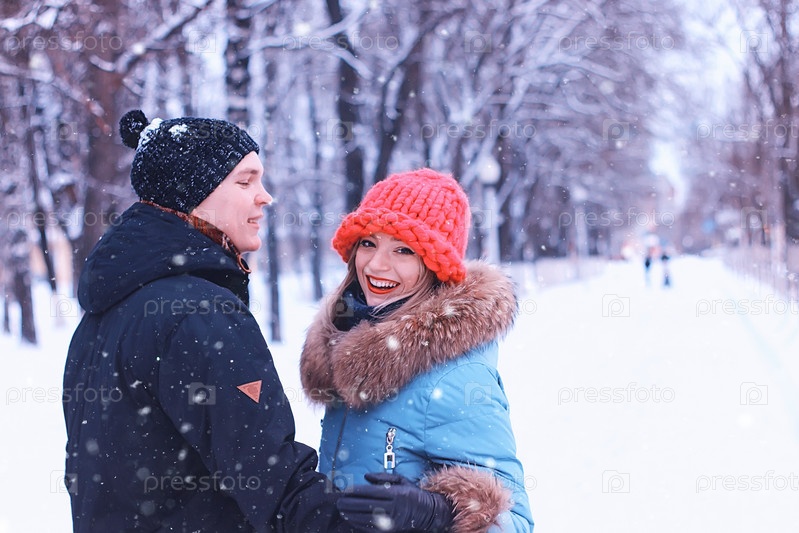Молодая пара в зимнем парке