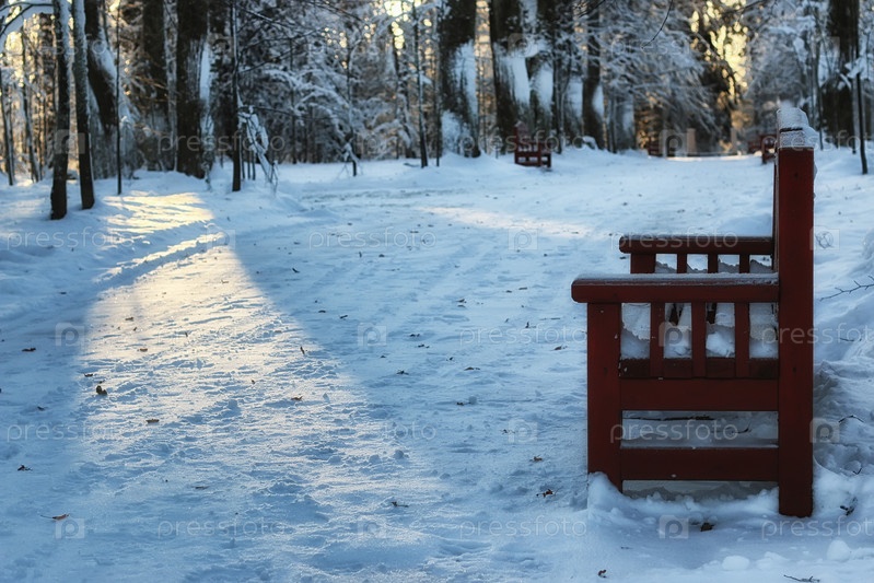 Деревянные скамейки в зимний период