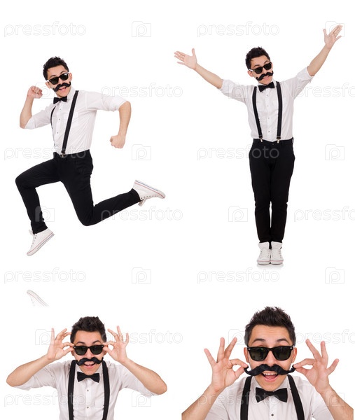 Молодой человек с усами на белом