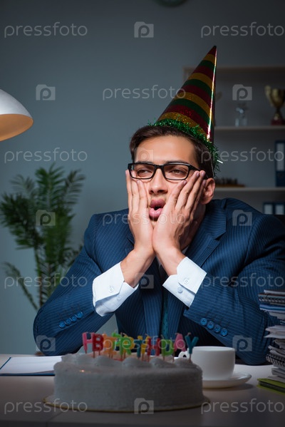 Человек празднует день рождения в офисе