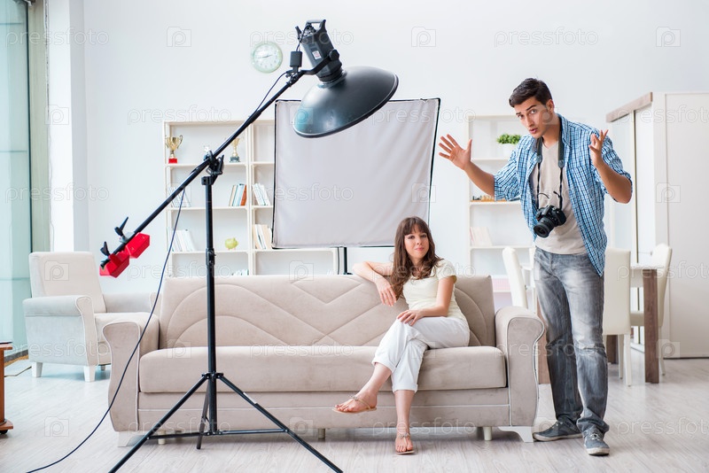 Молодой фотограф, работающий в фотостудии