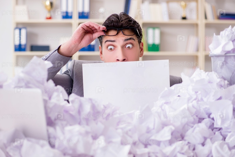 Бизнесмен в концепции переработки бумаги в офисе