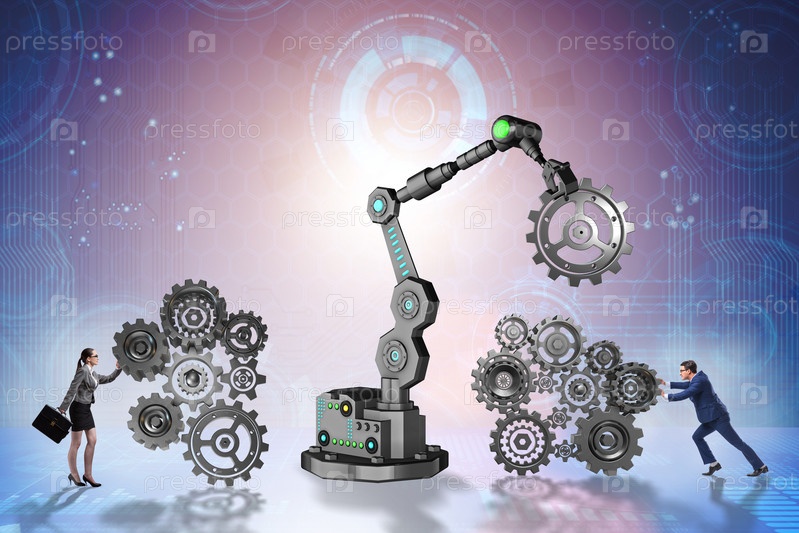 Бизнесмены с зубчатым колесом и роботизированной рукой