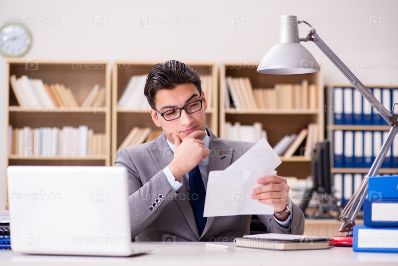 Бизнесмен получает письма в офисе