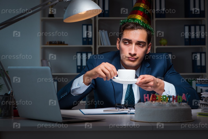 Человек празднует день рождения в офисе