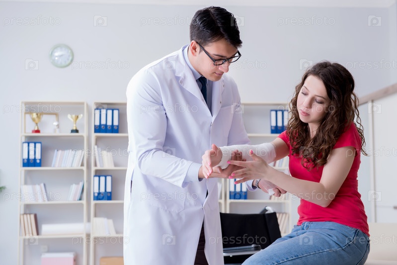 Врач и пациент во время обследования травм в больнице