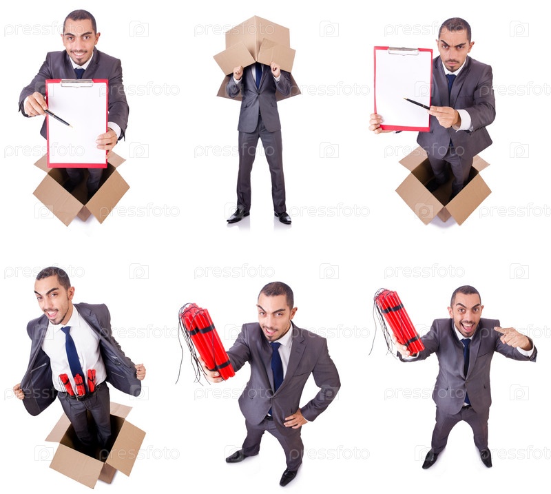 Бизнесмен, стоя в коробке