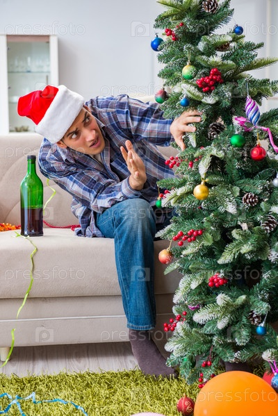 Парень с похмельем после рождественской вечеринки