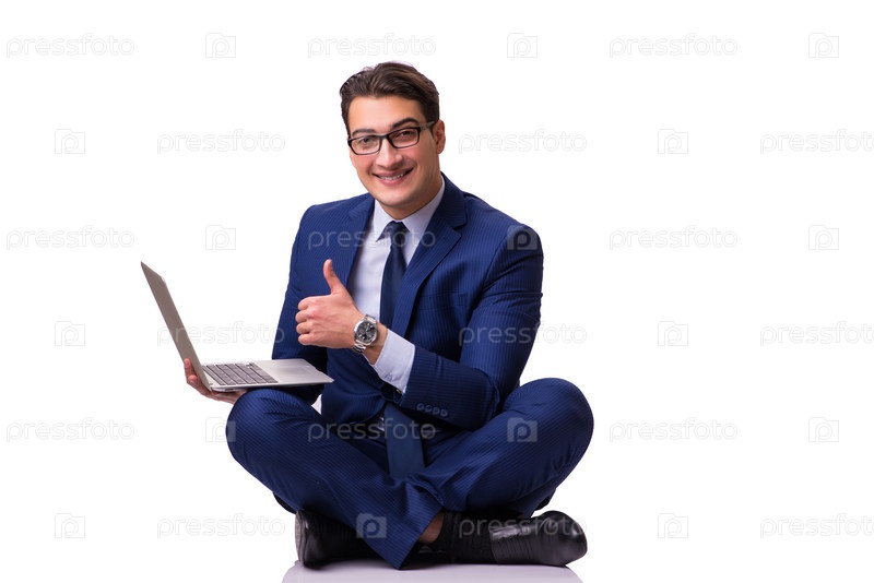 Бизнесмен, сидя на полу