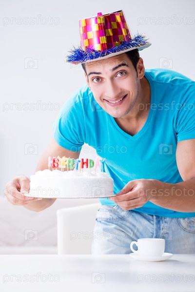 Молодой человек празднует день рождения дома в одиночестве
