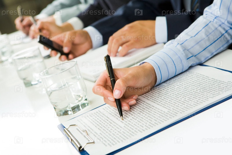 Изображение человеческой руки на бумаге во время бизнес-семинара