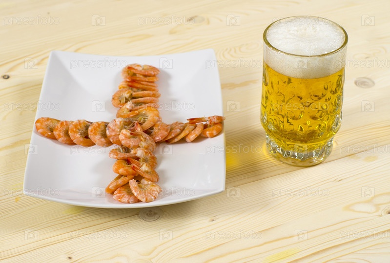 Пиво, креветки, закуска