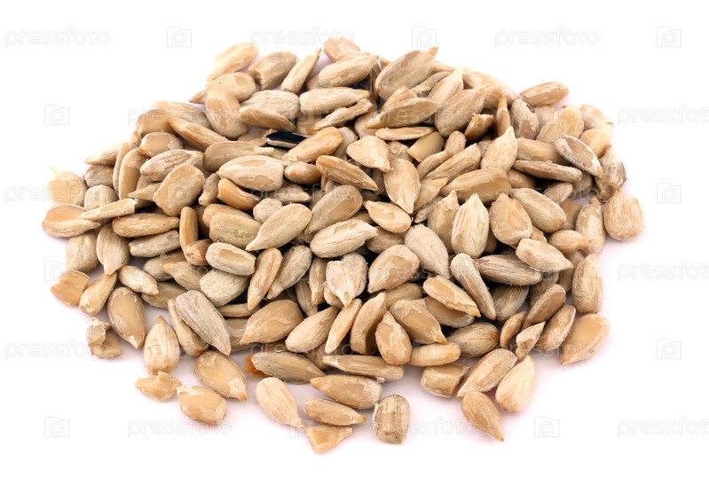 Горсть очищенных семян подсолнечника на белом фоне