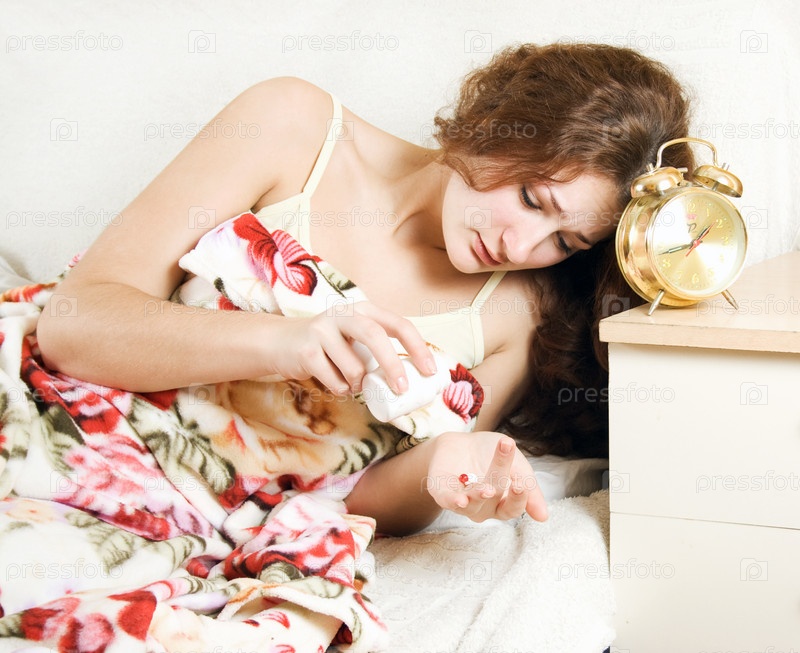 Несчастная женщина принимает снотворное от бессонницы