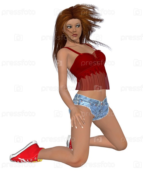 Брюнетка в красном топе