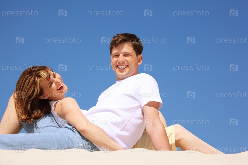 Улыбающаяся молодая пара на пляже