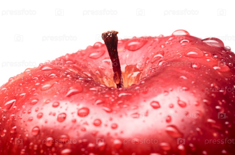 Мокрое вкусное красное яблоко