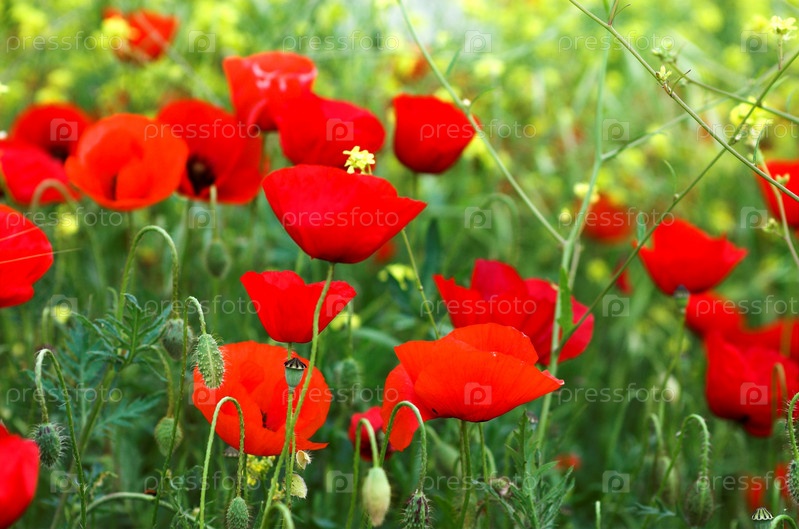 Красные маки и желтые цветы