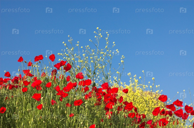 Красные маки и желтые цветы