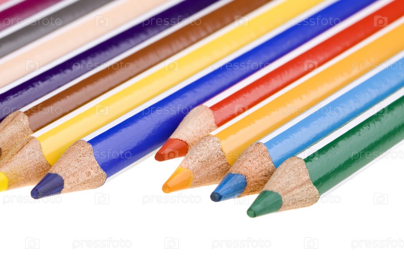 Набор цветных карандашей на белом фоне