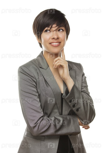 Молодая женщина смешанной расы смотрит в сторону
