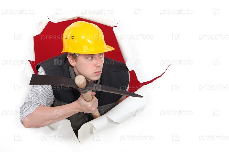 Строительный рабочий с киркой