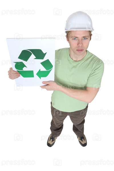 Строитель со знаком переработки отходов