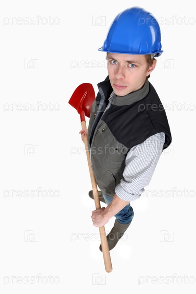 Молодой каменщик с лопатой