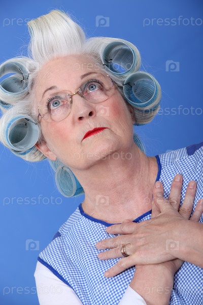 Пожилая женщина с бигуди на волосах