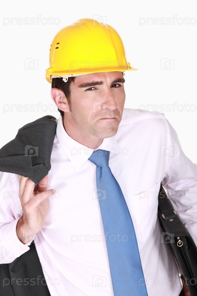 Скептически настроенный бизнесмен в каске
